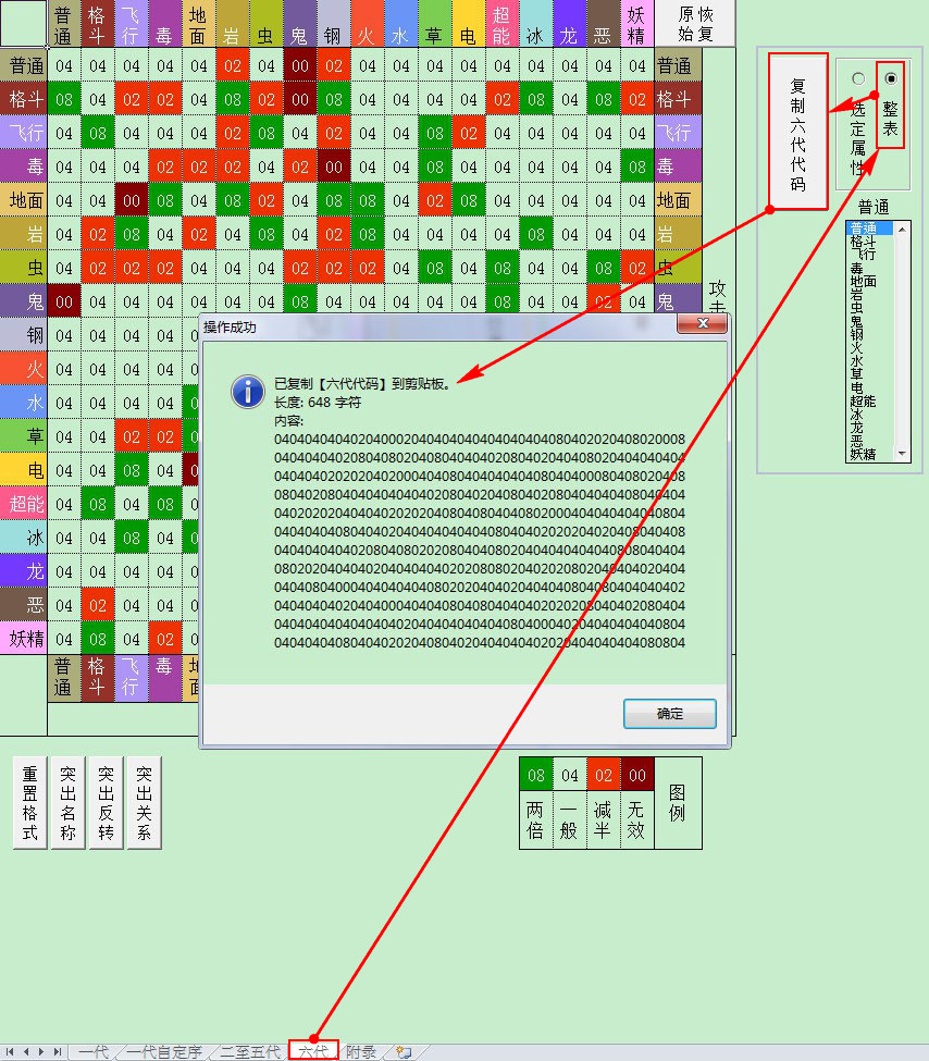【注】六代的反转对战无单独属性相克表,修改上表即同时修改反转对战属性相克表。