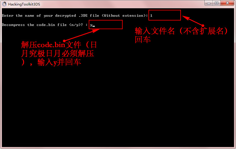 〡、cci文件,需将扩展名改为3ds,为方便操作,可命名为1.3ds。双击HackingToolkit3DS.exe,输入D并回车,再输入文件名1并回车,再输入Y并回车,出现“Extractiondone!”即提取完成。/ v- K; v8 @2 e$ [